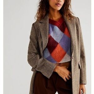 NWT Free People Argyle Quinn V-neck Wool blend Sweater Vest