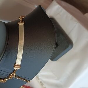 this gorgeous vintage necklace has gorgeous stones that sparkle in the light and has the satin ribbon bringing the metal part of the necklace to the clasps. 8"