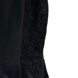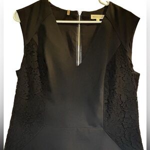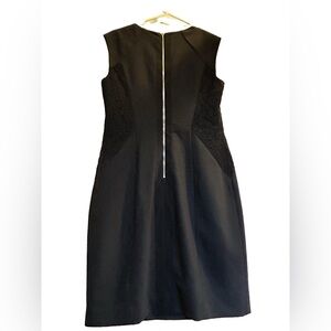 Rebecca Taylor Little Black Sheath Dress with Lace Side Panels Wool Blend Sz 10 Exposed Zipper detail