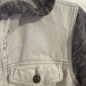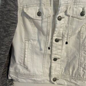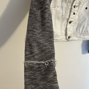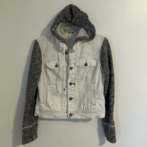 Free People White Denim Hoodie Jacket w/Gray Sleeves size S