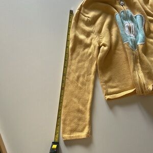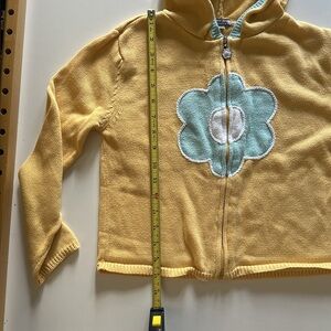 Good condition Hartstrings sweater zip up hoodie. Please see all photos. There is some damage to the end of one sleeve. The flower medallion on the zipper shows some wear.