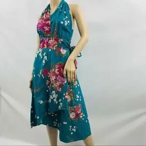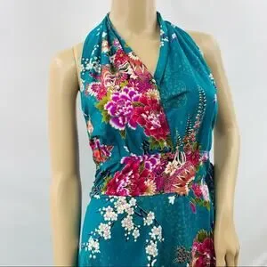 Antoine Akoplan Paris Halter Wrap Dress. V Neck. Elastic back with halter and wrap skirt. 100% Cotton.
