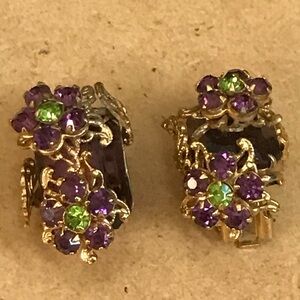 Purple and Green Rhinestones, gold tone