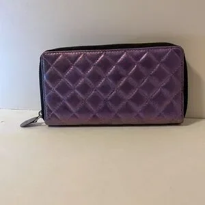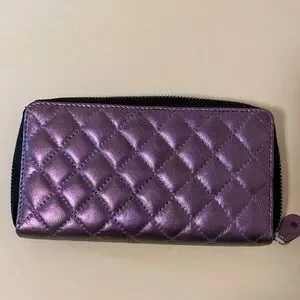 Iridescent purple quilted leather wallet. This brand new leather wallet was hand painted with high quality acrylic leather paint. RFID protection.