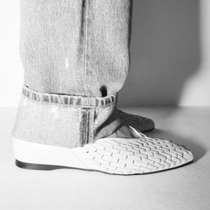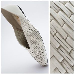 NWT. Zara Ecru Leather Ballet Flats with braided leather upper, V vamp. AIRFIT®. Flexible technical latex foam insole, designed to offer greater comfort. Sole Height: 0.7 cm / 0.2″. Size 9. Ref. 1505/710.