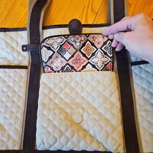 Vera Bradley Chestnut Tote Bag Birchwood Khaki Color Cotton Suede Trim