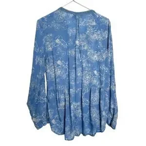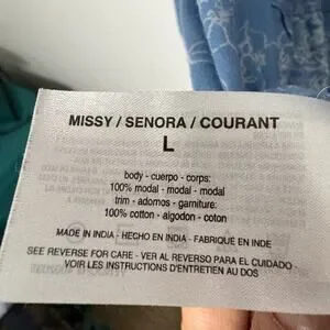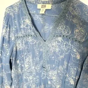 Vintage America Blues Women Missy Top L Blue Floral SOFT 100% Modal Boho Crochet