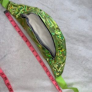 Such a useful, convenient, fun accessory for all ages and genders. New in package. I only took the green one out to photo. Wide range adjustable waist with click buckle. Holographic Iridescent single zip waist bag “fanny pack” banana pouch. Polyurethane faux leather exterior. Weather resistant. Soft interior lining. Additional colors are available! Please see photos for measurements.