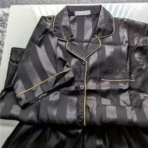 Women Elegant Lounge Set Satin Striped Button Up short Sleeve Shirt&Pants PJ