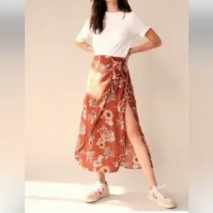 FREE PEOPLE Sunday Sarong Floral Midi Skirt