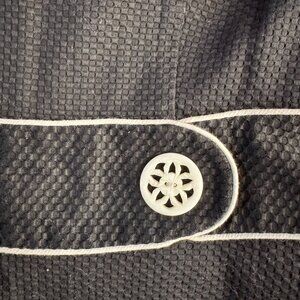 This elegant Alexandra Bartlett dress in size 8 beautifully combines sophistication and style. With its black textured fabric, the dress features a distinctive lace hem, offering a delicate contrast. The button detail at the waist adds an extra touch of charm, making it suitable for various occasions.