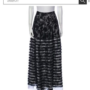 Sachin and Babi Noir Mesh Lace Overlay Maxi Skirt Black Floral Striped Size 6
