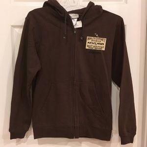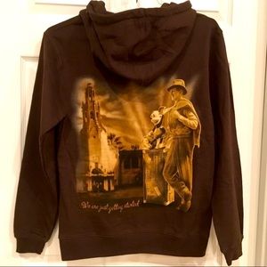Mickey sweatshirt from DISNEY PARKS ORIGINAL BROWN SWEATSHIRT with Hood MICKEY Mouse and WALT DISNEY on the BACK