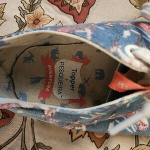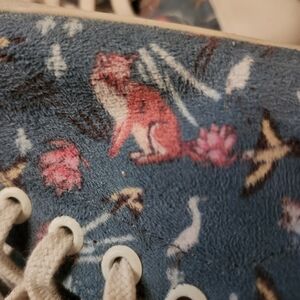 The most adorable pair of sneakers!! Slightly used, soles in excellent condition!! Wild animals. Giraffe, fox, gazelle, birds, butterflies!! Blue base with an orange strip down the back as well as around the laces. So Cute!!!