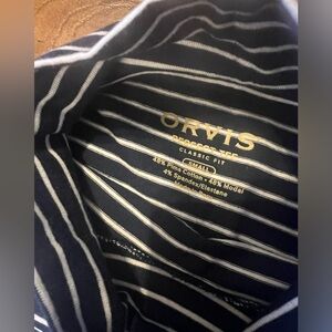ORVIS Women’s Perfect Tee Navy/White Mock Neck Long Sleeve Shirt NWOT