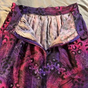 Amazing vintage skirt! This is the cutest thing ever! She needs a home! Pink and purple animal print. Pockets! Materials tag is cut out but it feels like cotton. Very soft! No holes stains or flaws. Measurements in photos. From a smoke and pet free home. Feel free to ask any questions or make an offer!