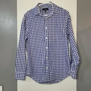 Banana Republic classic fit button down plaid shirt blue and white size small