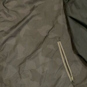 KS Sport Geometric Camouflage Size 6XL Windbreaker Lightweight Jacket Shades of grey and Black. Reflective on back zip front