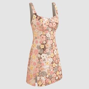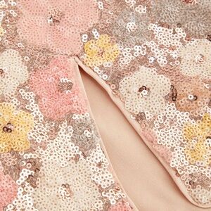 NWOT FLORAL SEQUIN SCOOP NECKLINE SPLIT MINI DRESS