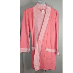 Charter Club Pink & White Polka Dot & Striped Bathrobe Size L. Hit above knee, tie waist. Excellent condition.