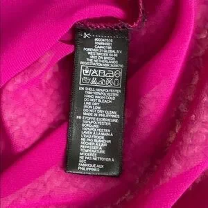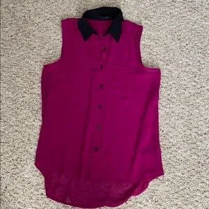 Forever 21 high low sheer magenta tank top with pocket detail. Black collar and black buttons. Works great with leggings. It is see-through\.