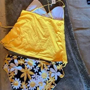NWT Beachsissi Women’s Cute Floral Print Swimsuit V-neck Tummy ControlTankini set