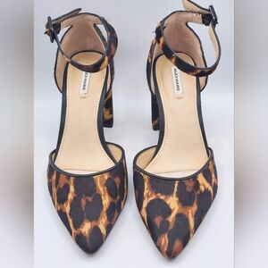 Alex Marie Leopard Ankle Strap Block Heels Leopard Print☆Real Fur