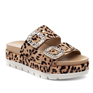J/slides Rice SlipOn Leopard Pony Leather Embellish Buckle Platform Sandals NIB