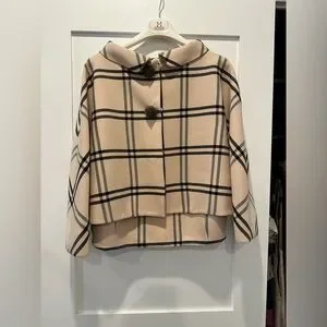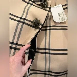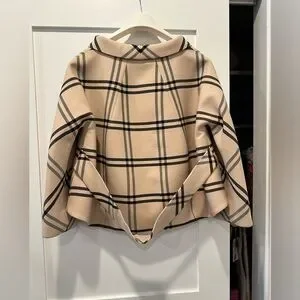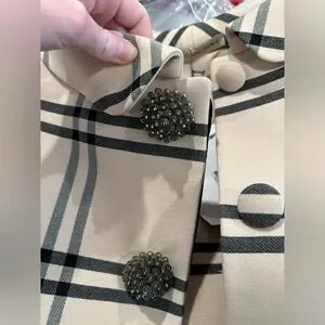 The result is this sublime cocoon wool jacket with a window pane print- as seen in look on the runway. The ornate buttons, hidden placket, fabric covered buttons, and panels aligned in an exacting manner so the pattern is continuous, are just some of the demi-couture-like features.