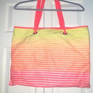 Victoria’s Secret Neon Pink & Yellow Stripe Tote Beach Bag