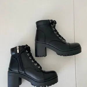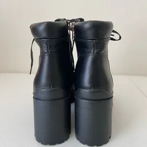NWOT | Nine West women’s faux leather lace up combat zip boots wedge chunk heel