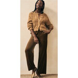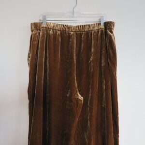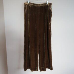 FAHERTY Silk Velvet Genevieve Pull On Wide Leg Pants in Breen Gold Bronze Sz XL