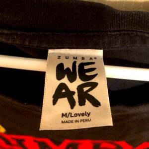 Zumba Varsity Collection Tank top, black with multi-print logo, size M/L, relaxed fit, cotton material.