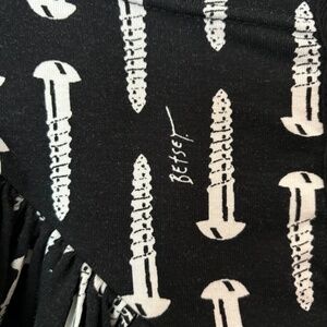 From Betsey's Vintage inspired lycra line released in 2021. Size large, but has a bit of stretch. Worn only a few times. Super cute, super mini flounce skirt features an awesome snap up front and pockets. The print is an updated version of an older print and occasionally has the name Betsey show up in the repeat.