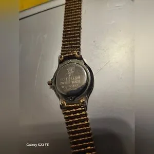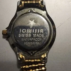 This is a beautiful watch made By Jowissa swiss made!!! very good condition overall gold tone strap with a black bezel and a goldtone face .you could wear this watch anywhere