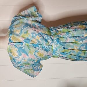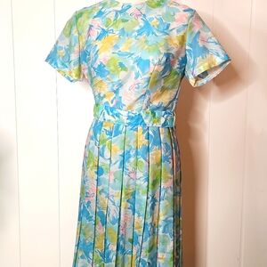 1960's Rare watercolor floral Belted pleated Cottagecore Midi Dress