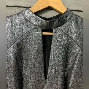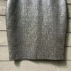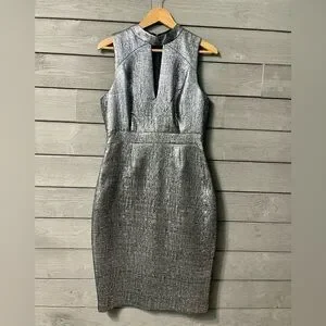 NWT Susana Monaco Silver Chrome Metallic Bodycon Pencil Midi Dress Sz 6 Wedding