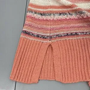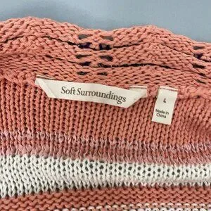 Soft Surroundings Cardigan Sweater Open Front Tunic Stripes Coral Pink Womens L