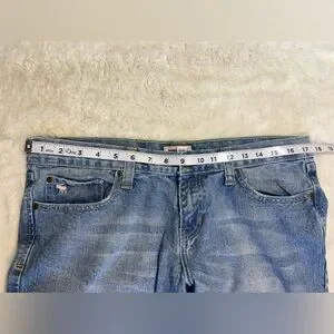 Abercrombie & Fitch size 10 straight leg jeans, button & zip closure, 5 pocket, 100% cotton, preowned-note minor wear to hem in last pic (14)