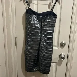 Never been worn dress from bcbg. Beautiful design and details. You will turn heads to this dress. It’s so pretty in person. It has a sweet heart breast line. Soo sexy when on. Size small but check measurements in photos.also dress has a built in bra support.