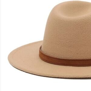 NWT Fedora Hat Womens Tan Wide Brim Hat Faux Leather Buckle Trim