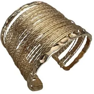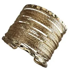 Stunning gold metal cuff bracelet with textured design. Adjustable for any wrist. Perfect for any occasion.