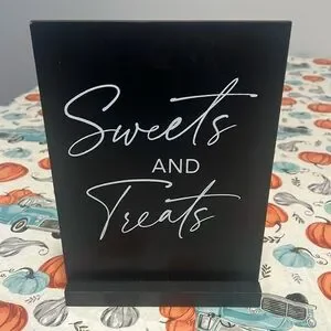 Sweets and treats sign for a wedding or party. Used once for a couple hours for my wedding, like new.