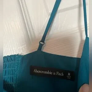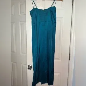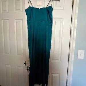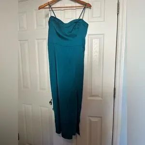 A&F satin high slit midi dress spaghetti strap Camille M party holiday teal
