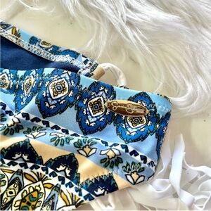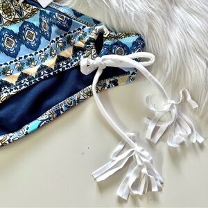 Jessica Simpson Navy Blue Medallion Boho Floral Side Tie Bikini Bottoms