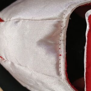 -Back of Micky helmet is a tiny red string pulling on material.