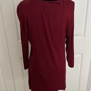 Long sleeved V-neck tunic shirt with deeper “V” outline in black and gold jewels. Warm Merlot color. Size large.