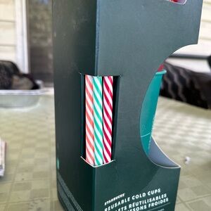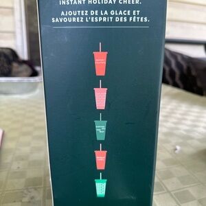 STARBUCKS set 5 cold cups. 24oz Brand new. Box alittle damaged. Never used. 5 cups, 5 lids 5 straws different colors. Holiday cheer. Sold out same day