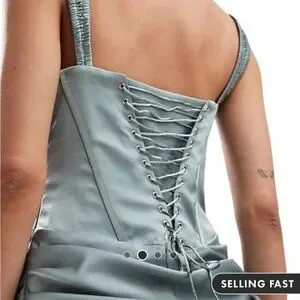 ASOS DESIGN corset detail draped satin maxi dress with lace up back in sea green