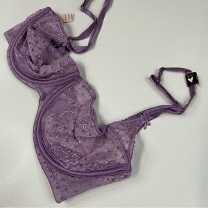 NEW Angels Victorias Secret 32DD Unlined Balconet Bra Purple Floral Lace #2159
